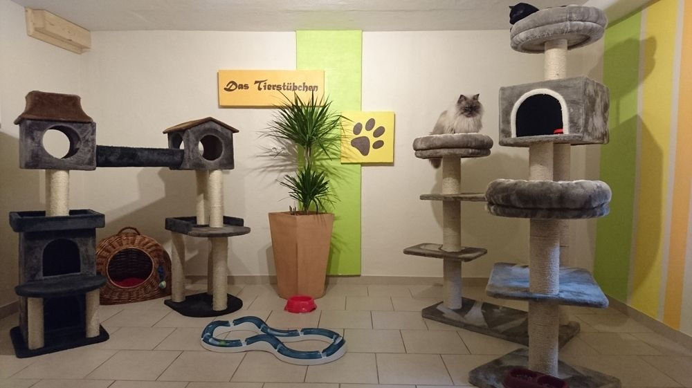 In einem großen und liebevoll eingerichteten Zimmer kann Ihre Katze zusammen mit Artgenossen den Aufenthalt genießen.
